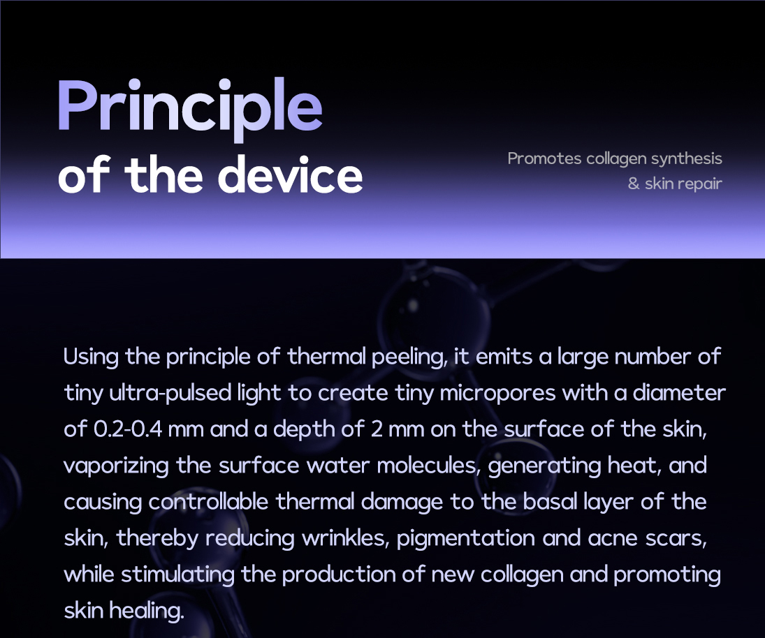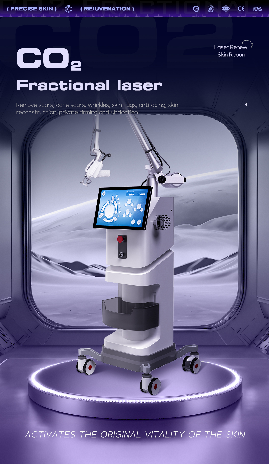 Fractional CO2 laser therapy works mainly on the principle of fractional heat damage. The fractional CO2 laser creates microscopic holes in the upper layer of skin and leaves the deeper part of the skin intact. The purpose of the treatment is to create controlled heat damage at the basal layer of skin leading to the reduction of wrinkles, pigmentation and acne scarring. The fractional CO2 laser also tightens and refines the skin as well as improving the long term collagen and elastin reproduction.