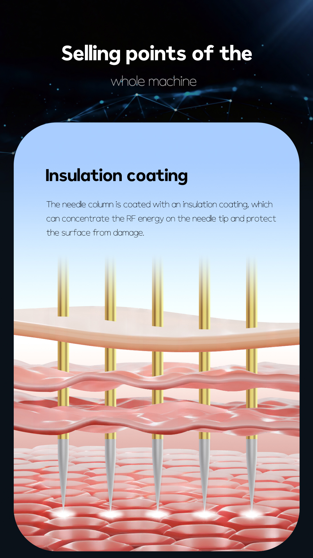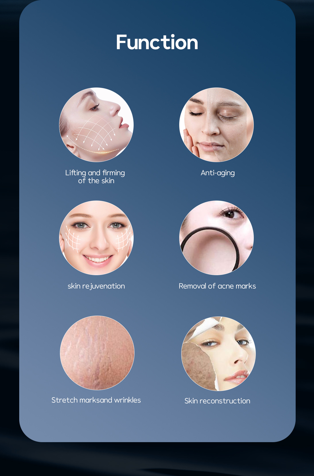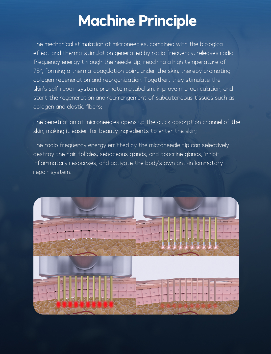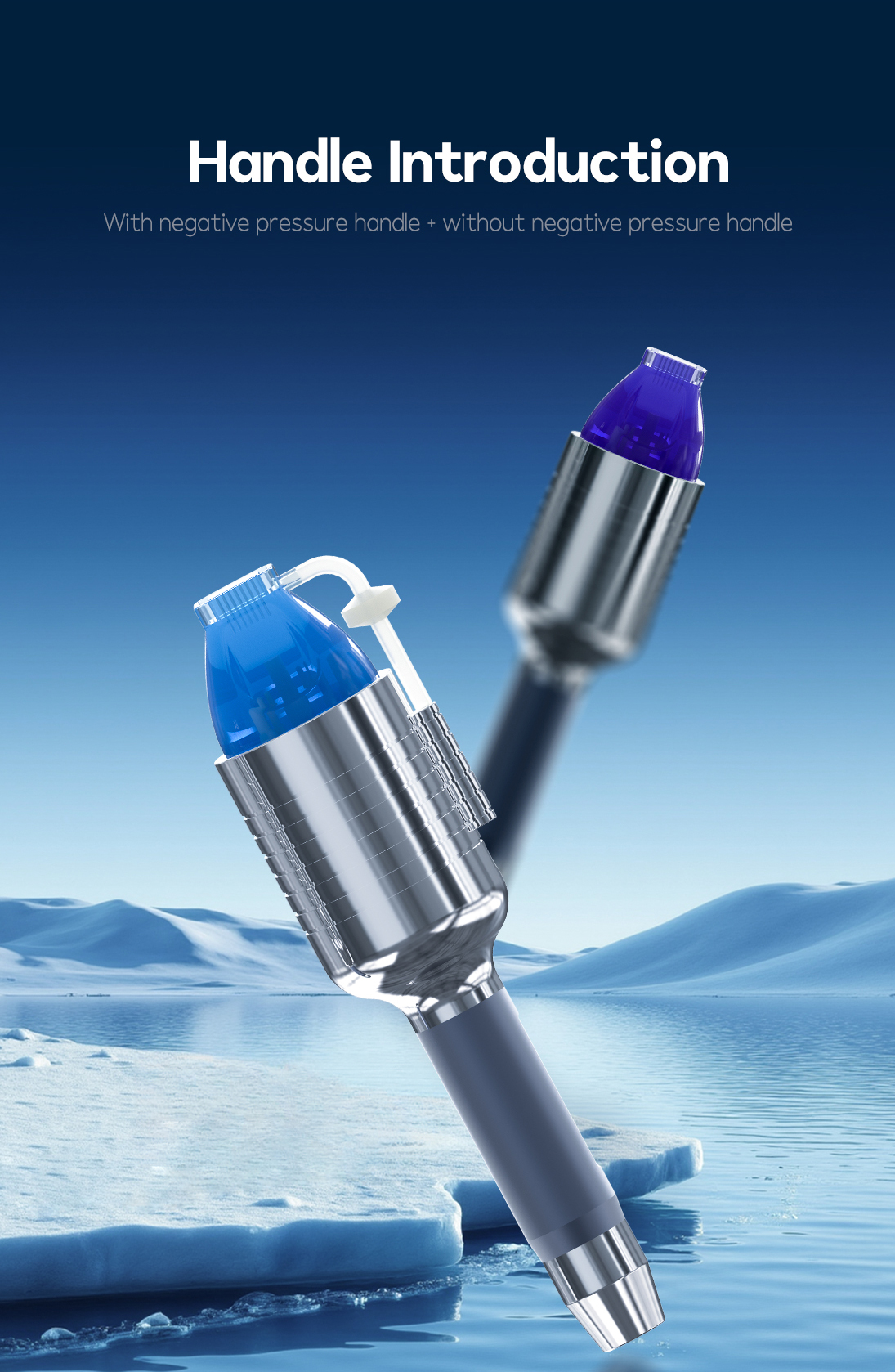 Adopting negative pressure adsorption technology,first adsorb the skin, and then apply the microneedle treatment,Ensure that the depth of each needle into the skin is the same and the energy is even,Tighten the skin to avoid leakage of medicine and automatically eject the needle,The needles are packaged with sterile nitrogen to ensure the hygiene and safety of each treatment.