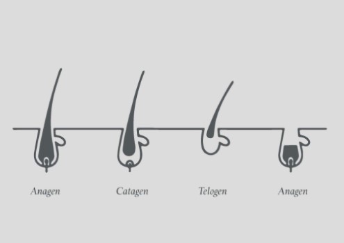 3.Catagen: Hair growth is static, the number of capillaries is reduced, the dermal papilla shrinks, and melanocytes stop producing melanin.