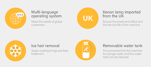 Traditional photon therapy has only one cooling gear, which is poor in comfort and has the risk of scalding blisters; precision photon rejuvenation has 4 levels of cooling, which can be fine-tuned according to the needs of treatment and customer tolerance. The precise spectrum effectively avoids the ineffective spectrum from affecting the skin. Thermal damage.