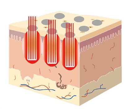 (The figure below shows the mode of action of the dot-matrix laser very well) It is like a matrix of dense small holes is punched on the skin. The skin between the pores is normal.