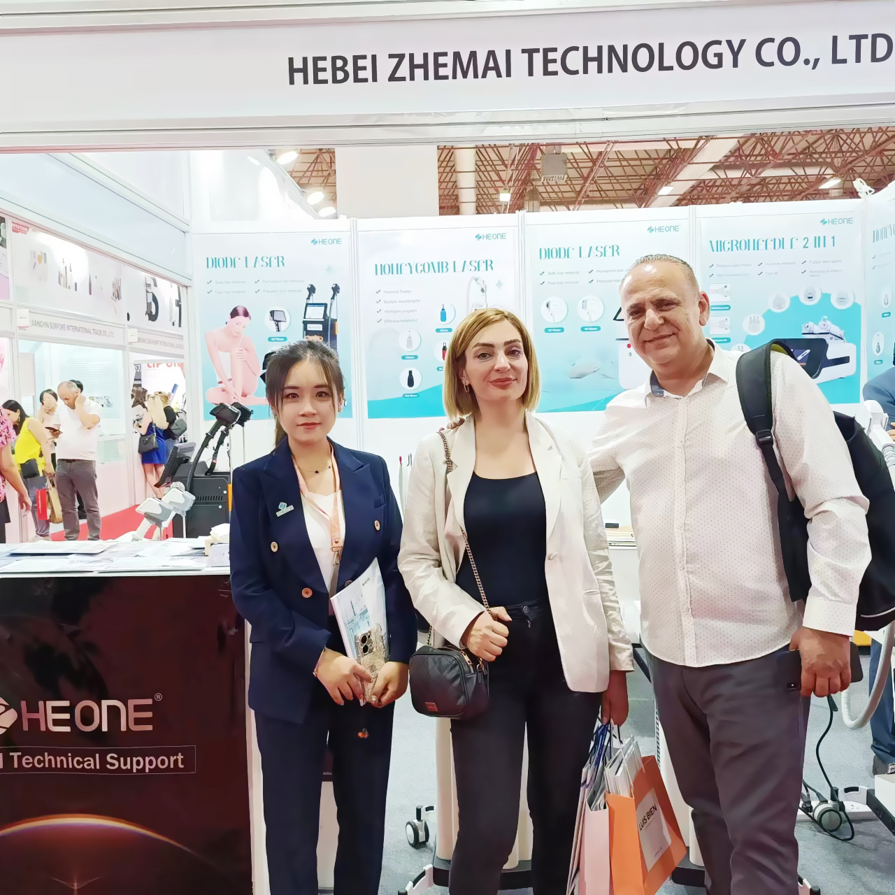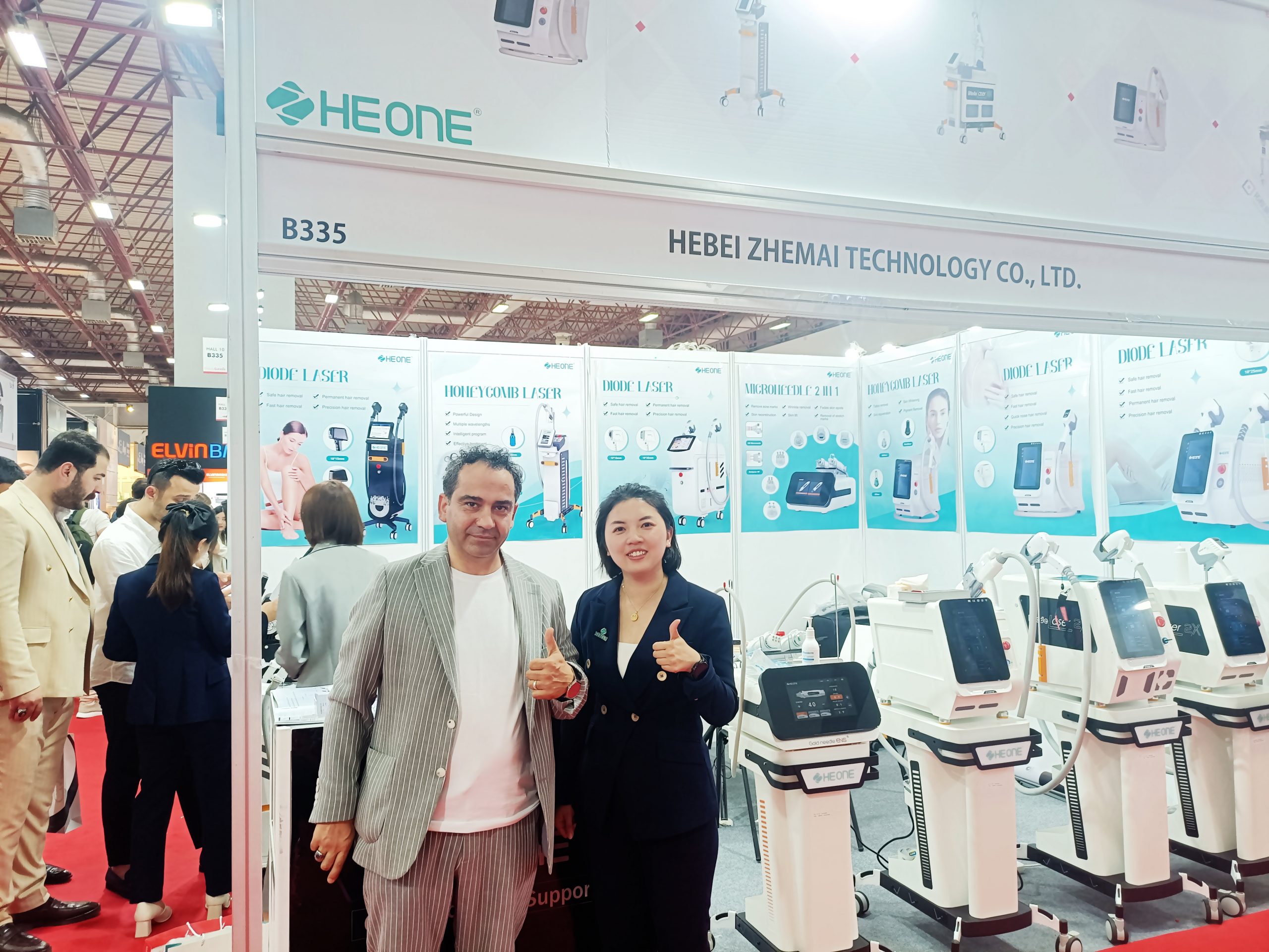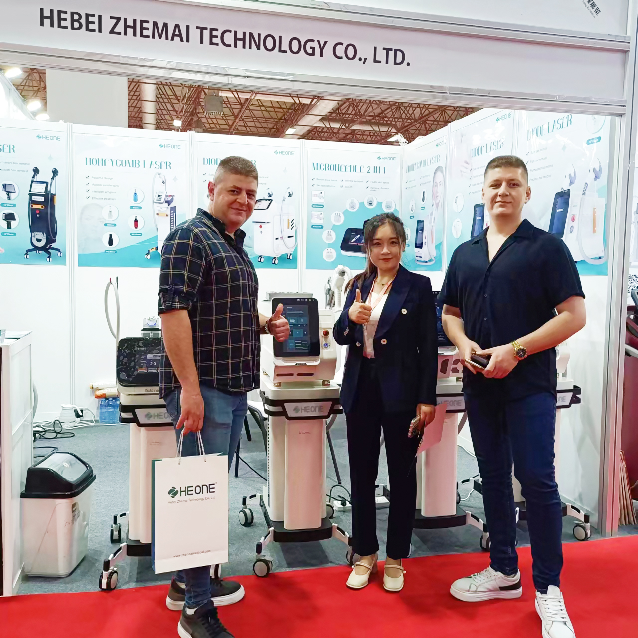 At the exhibition, the zheone team exhibited a variety of design diode laser hair removal devices, Q-switching tattoo removal devices, radio frequency microneedle devices, etc. These instruments not only have a stylish appearance, but also incorporate advanced technology, attracting many customers to visit the zheone booth.
